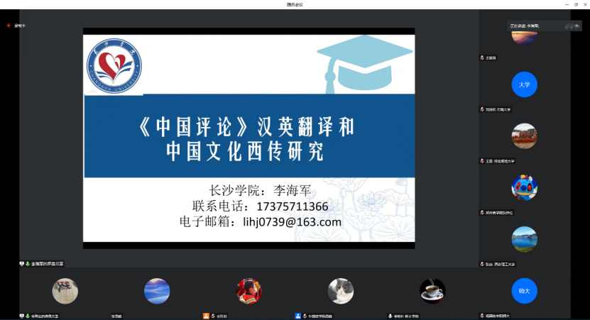 长沙学院李海军教授以“《中国评论》汉英翻译和中国文化西传研究”为题,作主旨发言。