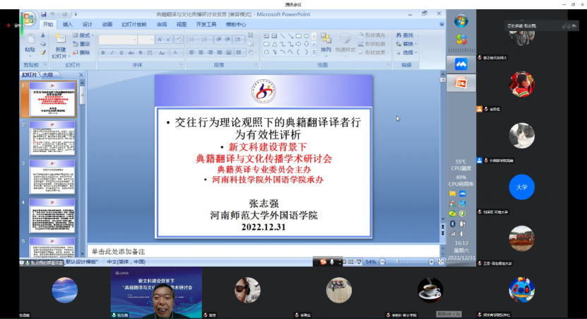 河南师范大学张志强教授以“交往行为理论关照下典籍翻译译者行为有效性评析”为题,作主旨发言。