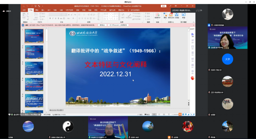 四川外国语大学李金树教授以“翻译批评中的战争叙述(1949-1966):文本特征与文化阐释”为题,作主旨发言。