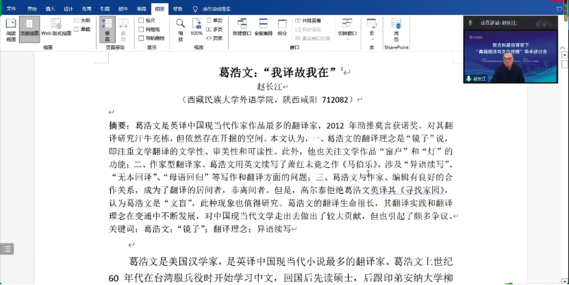 西藏民族大学赵长江教授以“葛浩文:‘我译故我在’”为题,作主旨发言。