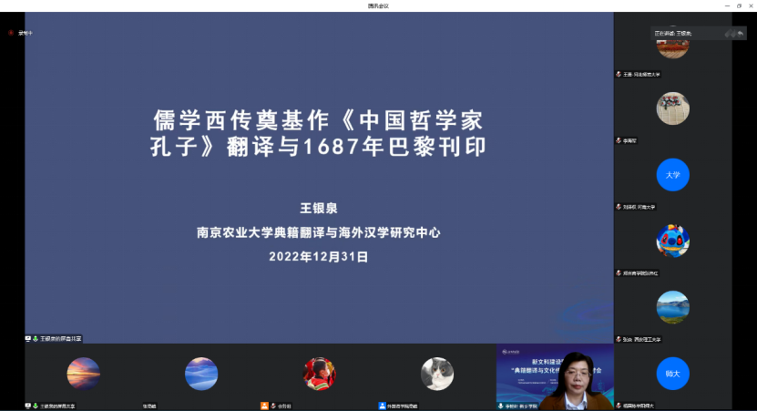 南京农业大学王银泉教授以“儒学西传奠基作《中国哲学家孔子》翻译与1687年巴黎刊印考证”为题,作主旨发言。