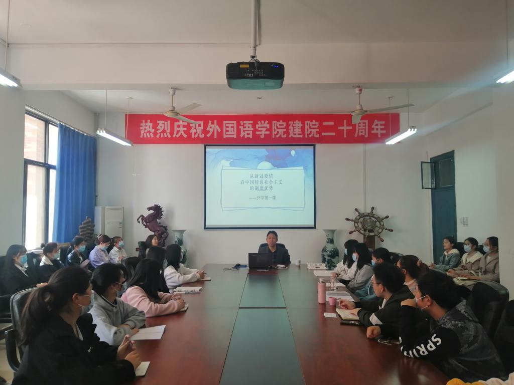 院长李会民以“从新冠肺炎疫情看中国特色社会主义的制度优势”为主题,为同学们讲授了“开学第一课”。