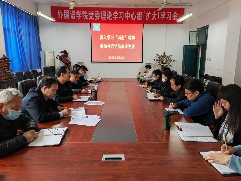在7211会议室召开党委理论学习中心组(扩大)学习会,专题学习2022年全国两会精神。学院党政领导班子成员、各支部书记、科级以上干部参加了会议。