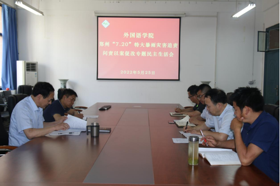 在7211会议室召开郑州“7· 20”特大暴雨灾害追责问责以案促改专题民主生活会,学院处级以上领导干部参加会议。