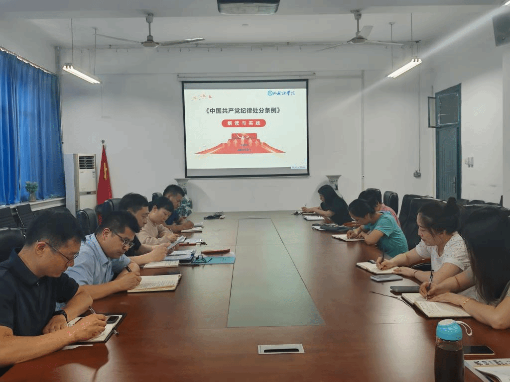 在7211会议室召开理论学习中心组(扩大)学习会,党委书记作“《中国共产党纪律处分条例》解读与实践”专题党课。学院党委理论学习中心组成员和党支部书记、办公室负责人、学工干部参加会议。