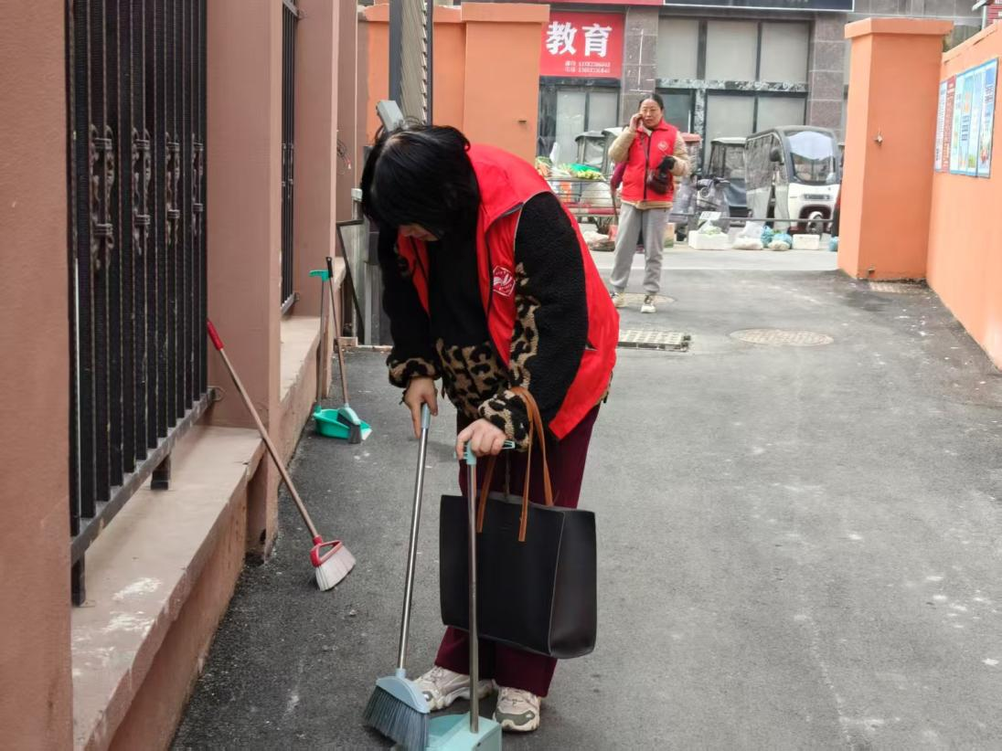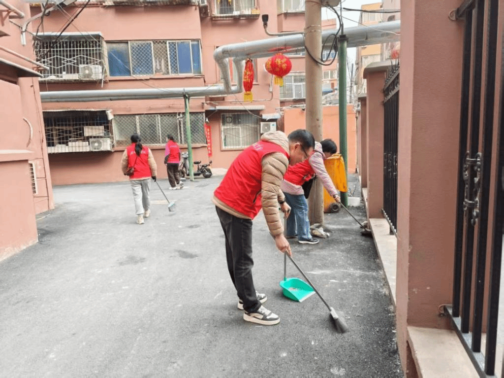 志愿者们骑着电动车带着扫把簸箕等工具,达到社区集合后迅速投入到清扫工作中。对社区街道路面、道边、灌木丛旁的烟头、纸屑等垃圾进行了细致的清理,对一户正在装修施工的人家门前重点进行了打扫。