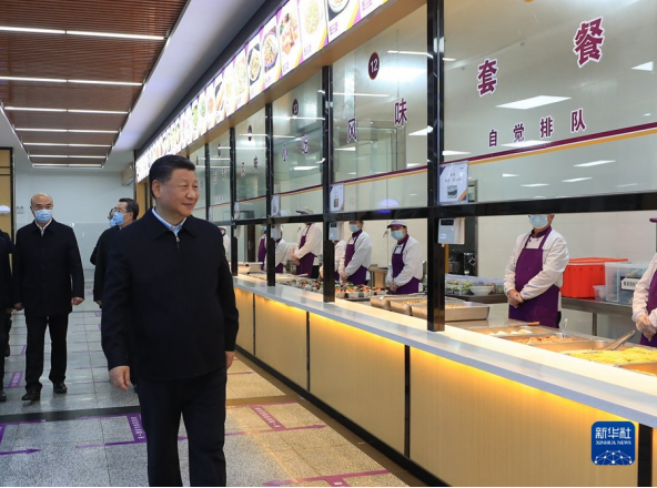 10月26日至28日,中共中央总书记、国家主席、中央军委主席习近平在陕西省延安市、河南省安阳市考察。这是26日下午,习近平在延安市延安中学枣园校区学生餐厅考察。 新华社记者 王晔 摄