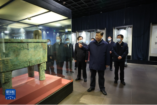 28日下午,习近平考察了位于安阳市西北郊洹河南北两岸的殷墟遗址。殷墟是我国历史上第一个文献可考、为考古发掘所证实的商代晚期都城遗址。习近平步入殷墟博物馆,仔细观摩青铜器、玉器、甲骨文等出土文物。随后,习近平来到车马坑展厅,察看商代畜力车实物标本和道路遗迹。他指出,殷墟出土的甲骨文为我们保存3000年前的文字,把中国信史向上推进了约1000年。殷墟我向往已久,这次来是想更深地学习理解中华文明,古为今用,为更好建设中华民族现代文明提供借鉴。中国的汉文字非常了不起,中华民族的形成和发展离不开汉文字的维系。在这方面,考古事业居功至伟。考古工作要继续重视和加强,继续深化中华文明探源工程。中华文明源远流长,从未中断,塑造了我们伟大的民族,这个民族还会伟大下去的。要通过文物发掘、研究保护工作,更好地传承优秀传统文化。习近平强调,中华优秀传统文化是我们党创新理论的“根”,我们推进马克思主义中国化时代化的根本途径是“两个结合”。我们要坚定文化自信,增强做中国人的自信心和自豪感。