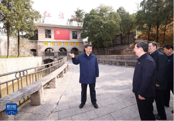 28日上午,习近平来到河南安阳林州市红旗渠纪念馆。上世纪60年代,当地人民为解决靠天等雨的恶劣生存环境,在党和政府支持下,在太行山腰修建了引漳入林水利工程,被称为“人工天河”。习近平走进展馆,依次参观了“千年旱魔,世代抗争”、“红旗引领,创造奇迹”、“英雄人民,太行丰碑”、“山河巨变,实现梦想”、“继往开来,精神永恒”等展览内容。习近平指出,红旗渠就是纪念碑,记载了林县人不认命、不服输、敢于战天斗地的英雄气概。要用红旗渠精神教育人民特别是广大青少年,社会主义是拼出来、干出来、拿命换来的,不仅过去如此,新时代也是如此。没有老一辈人拼命地干,没有他们付出的鲜血乃至生命,就没有今天的幸福生活,我们要永远铭记他们。今天,物质生活大为改善,但愚公移山、艰苦奋斗的精神不能变。红旗渠很有教育意义,大家都应该来看看。随后,习近平实地察看红旗渠分水闸运行情况,详细了解分水闸在调水、灌溉、改善生态环境等方面的重要作用。