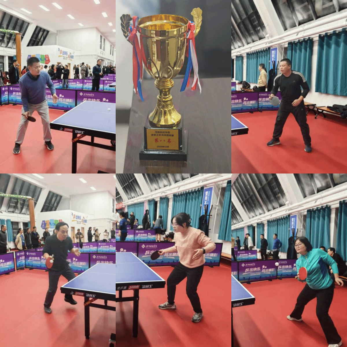 分工会组织教职工积极参加学校教工乒乓球比赛。在10月31日的决赛中经过激烈的角逐,荣获2025年教职工乒乓球比赛第八名。