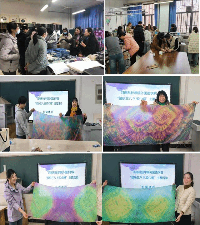 三月阳光明媚,生机勃勃,校园里到处洋溢着春的气息。为庆祝“三八”国际妇女节,丰富女教师的文化生活,外国语学院组织女教师开展“缤纷三八”主题扎染体验活动。