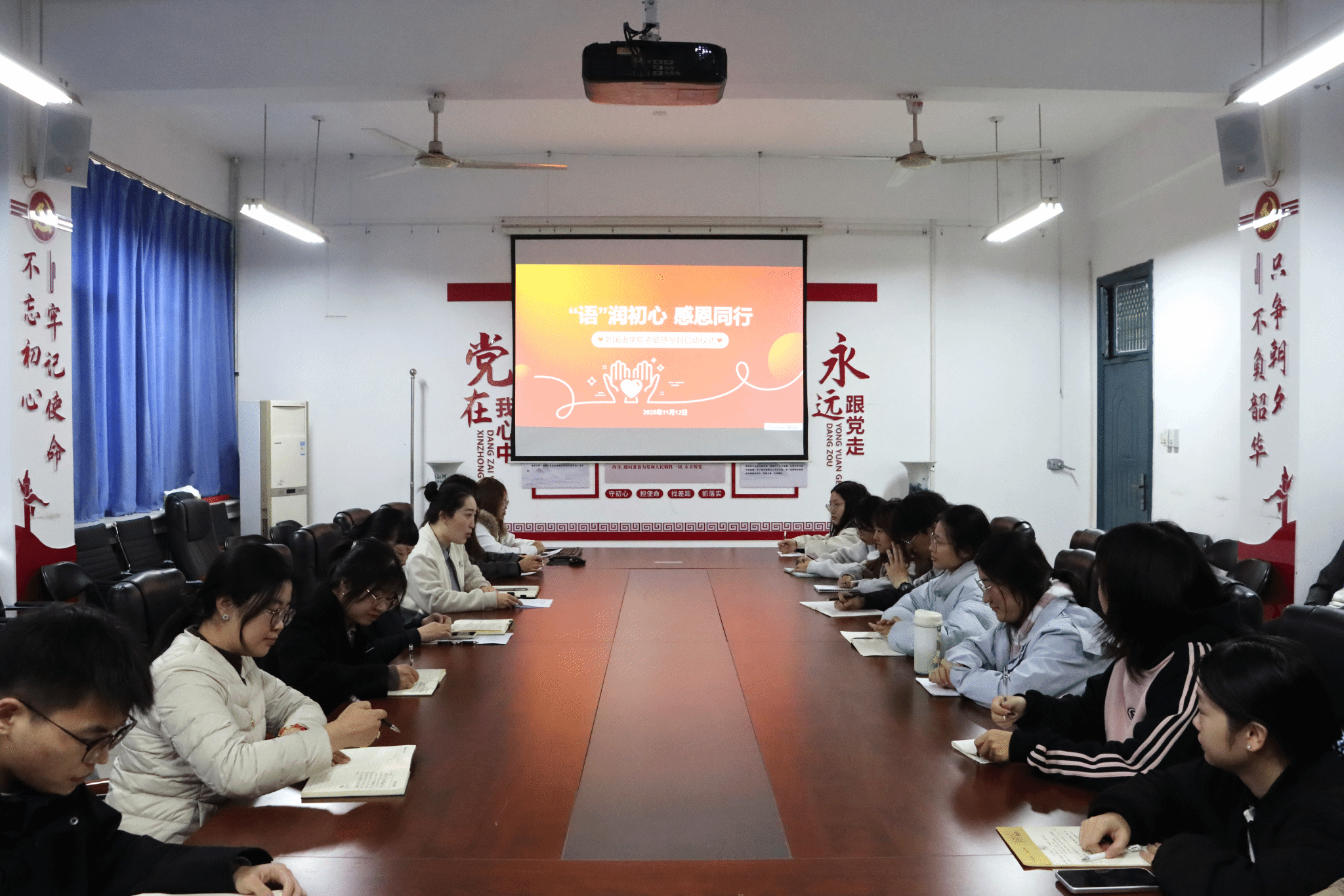 于7211会议室成功举办“语”润初心、感恩同行——资助感恩月启动仪式。学院党委副书记、团委老师及主要学生干部共同参与本次活动。