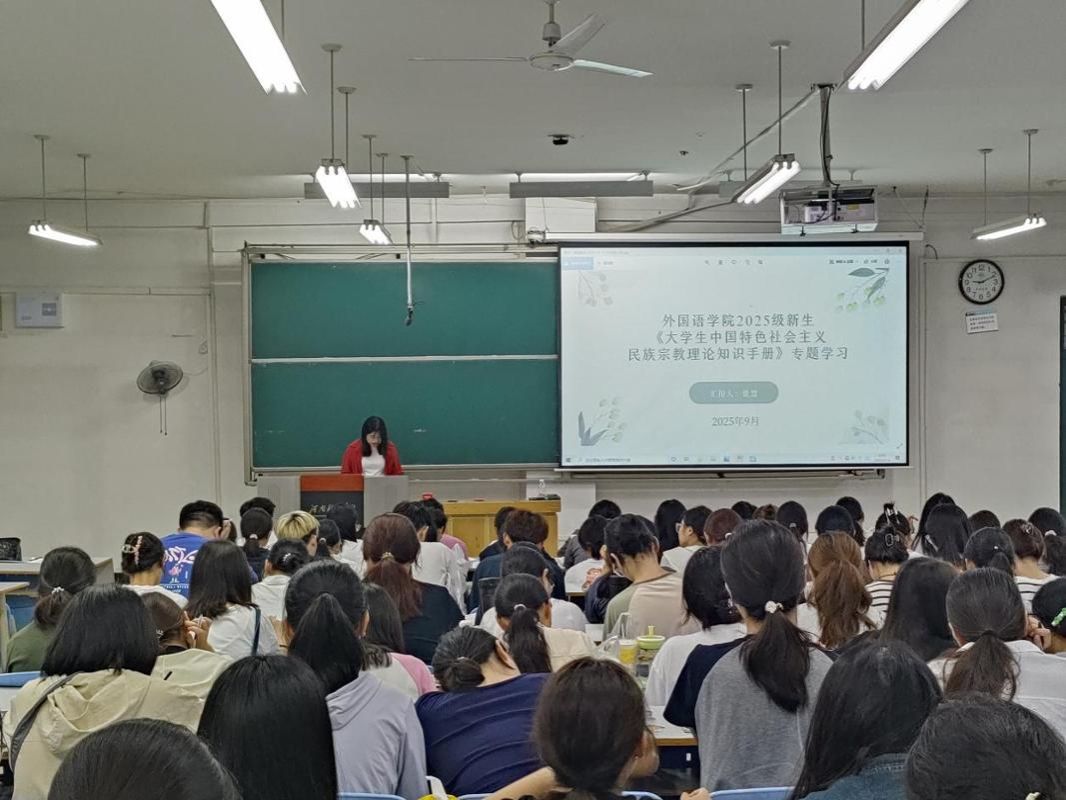 为引导2025级新生牢固树立正确的民族观与宗教观,9月16日,学院在10合六教室开展民族宗教理论知识专题学习会。会议带领全体新生学习了手册核心内容,进行了民族宗教政策法规知识宣传,引导学生树立正确的世界观、人生观和价值观。