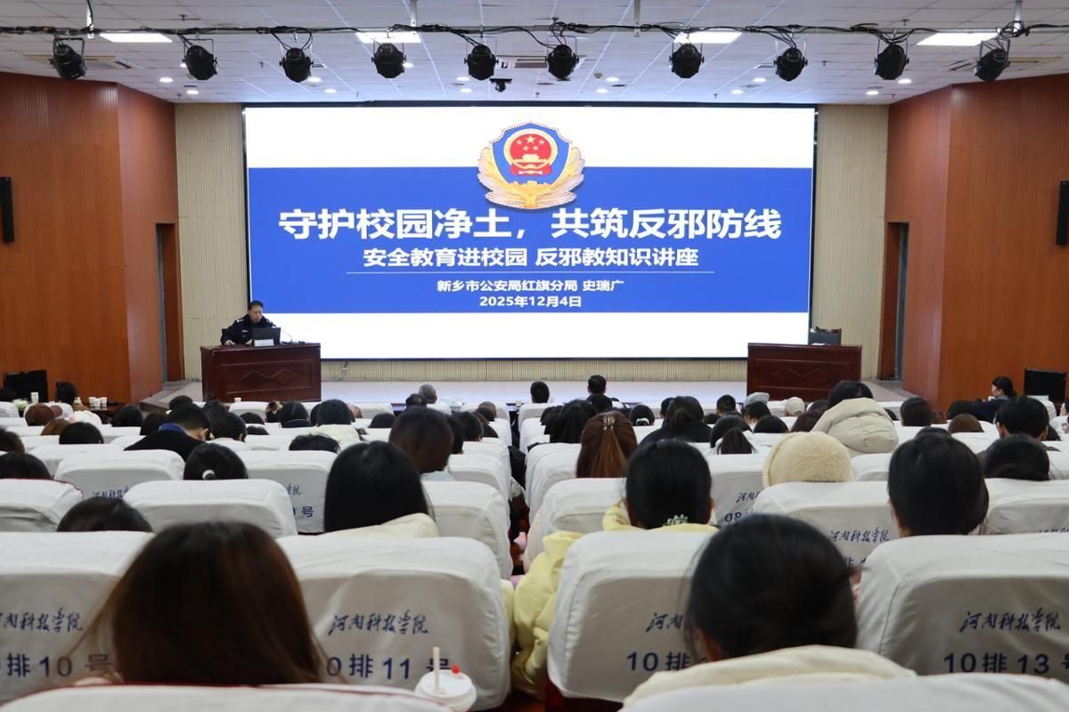 学院在图书馆一楼报告厅举办大学生安全知识专题报告会。新乡市公安局红旗分局政保大队教导员史瑞广、副大队长徐文辉应邀担任主讲嘉宾。史瑞广以“守护校园净土,共筑反邪防线”为主题,结合多年公安工作经验与典型案例,详细介绍邪教的定义、常见类型及本质特征,深入剖析邪教对个人身心健康、家庭幸福及社会稳定的严重危害,并传授实用的邪教识别方法。徐文辉围绕《中华人民共和国反恐怖主义法》核心内容,聚焦恐怖主义的定义、现实危害及应对预防措施展开宣讲。通过复盘真实反恐应急处置案例,他生动演示可疑人员、危险物品及异常行为的识别要点,现场传授紧急情况下的避险逃生、自救互救技巧。