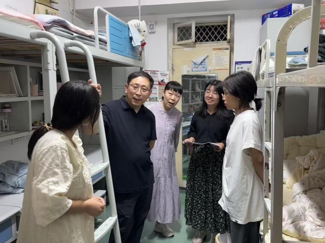 9月6日晚间,学院领导教师深入新生宿舍看望2025级新生,与新生亲切交谈,了解新生的生源地、宿舍安顿以及入学适应等情况,叮嘱新生注意用水用电等宿舍安全事项,合理安排作息时间,尽快适应大学生活。新生们纷纷表示,领导老师们的走访让大家感受到了学院的深切关怀,将积极适应,以更加饱满的热情投入到大学生活中。