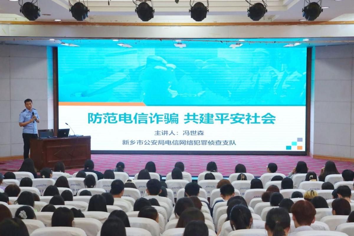 在图教201举办防范电信网络诈骗宣传讲座,邀请新乡市公安局电信网络犯罪侦查支队反诈宣讲员冯世森为学院2025级全体新生讲授防范电信诈骗安全知识。冯世森以“防范电信诈骗 共建平安社会”为主题,为学生上了一堂生动的安全教育课。他结合真实的案例和案件,围绕当前电信网络诈骗的严峻形势、诈骗的特点与类型、新型诈骗的作案手段以及应对诈骗的防范技巧等方面,用通俗易懂的语言向同学们进行了系统的讲解,提醒同学们增强安全防范意识,维护好自身财产安全。