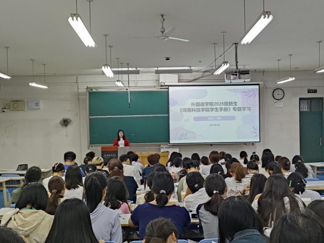 学生手册》专题学习会。会议对《学生手册》中的法律法规、思想政治教育、日常管理、学籍及学位管理、资助管理等内容进行了详细的讲解,通过列举具体事例,帮助学生更好地理解学校的规章制度。