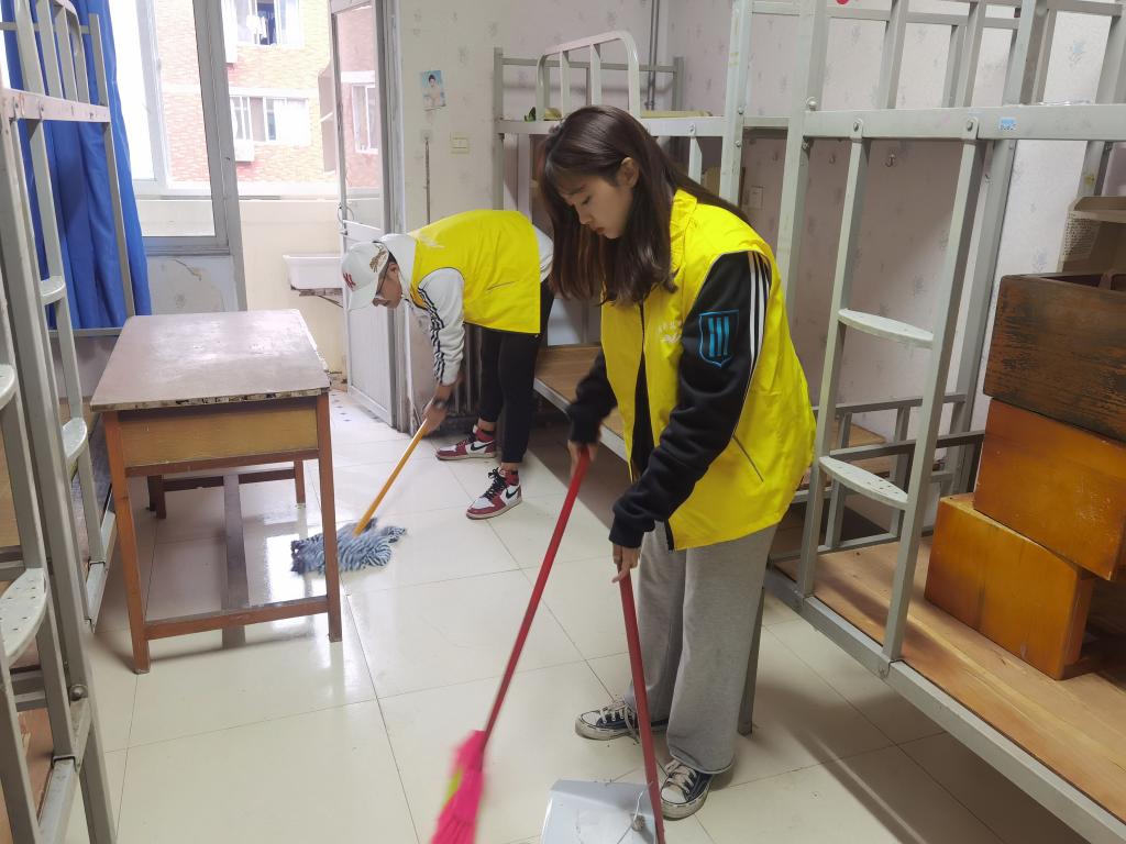 组织学生党员志愿服务队对2020级新生宿舍开展了清扫、检查活动。
