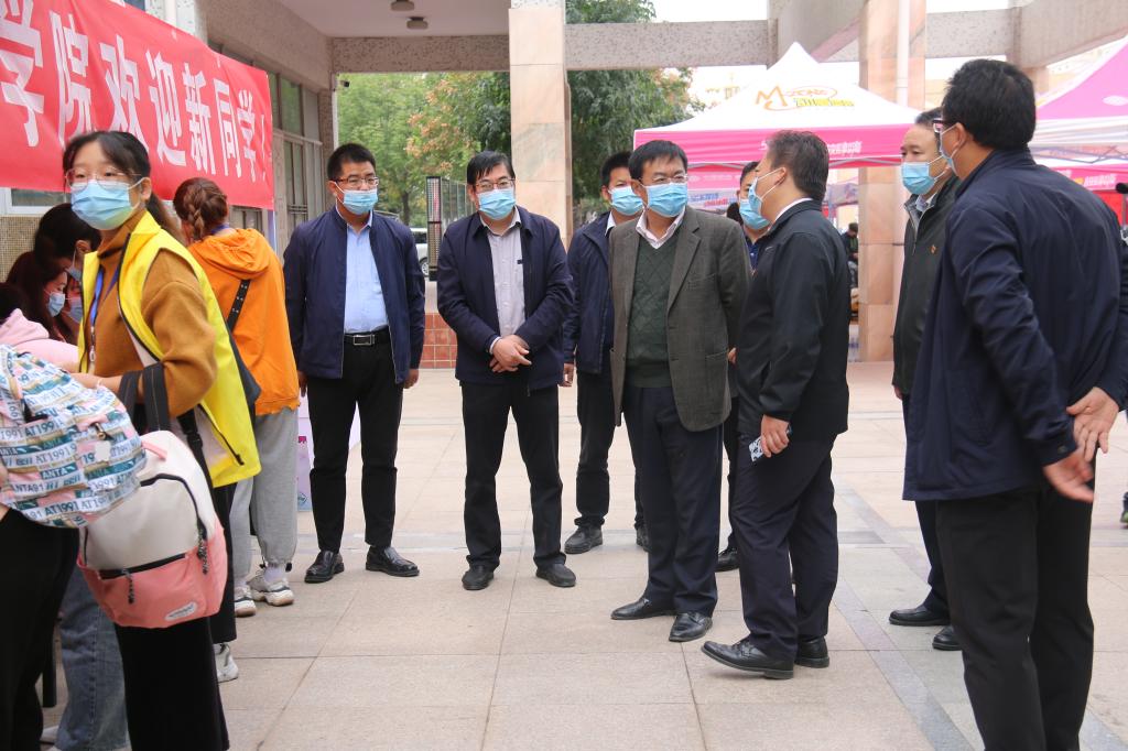 联点校领导、校纪委书记、监察专员贺杰亲临现场指导工作,学院党政领导班子多次到现场看望慰问工作人员和学生志愿者,仔细询问迎新进展情况,叮嘱工作人员要在做好疫情防控的前提下,为新同学做好登记、行李搬运等服务,让家长安心、学生满意。