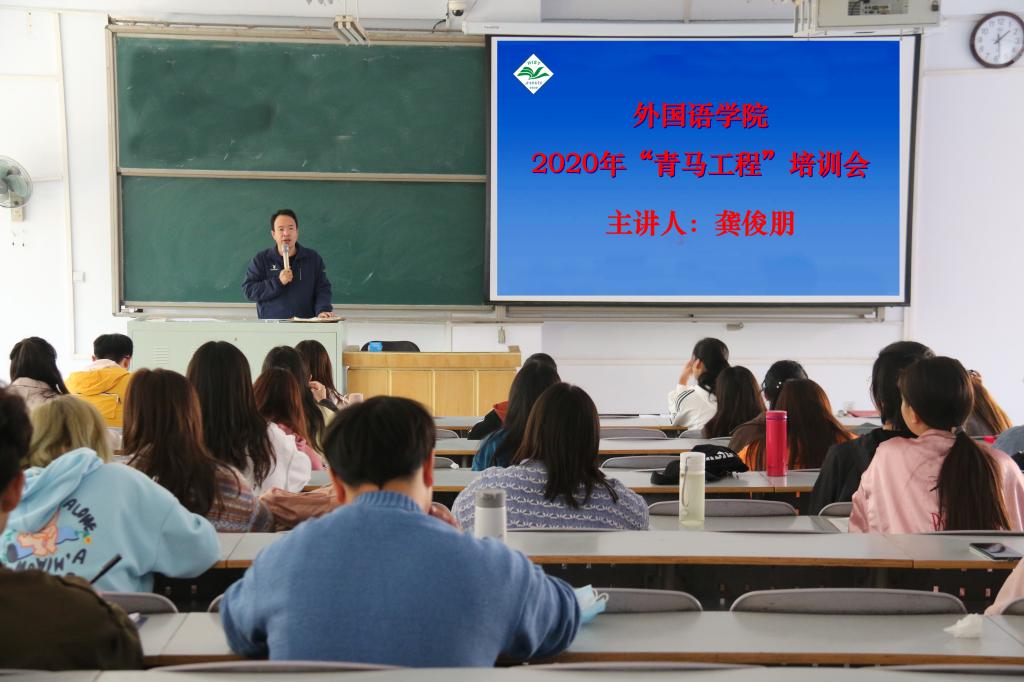 在10#合二教室举行2020年团委、学生会换届暨青马工程培训报告会,学院党委副书记龚俊朋、团委书记张高峰出席大会,兼职辅导员刘雅雲及团委、学生会成员、全院团支书、班长参加大会。