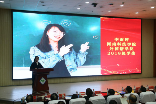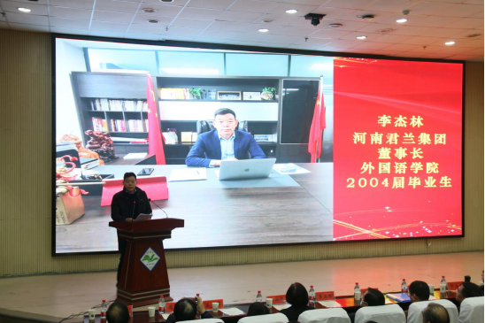 首任书记周建设、上海利腾纺织品有限公司总经理刘万斌(2003届校友)、河南君兰集团董事长李杰林(2004届校友)、郑州大学硕士生导师张庆彬(2008届校友)、校企合作企业代表河南云尧电子商务有限公司副总经理贾建军和在校生代表李雨婷(2018级)分别登台发言。