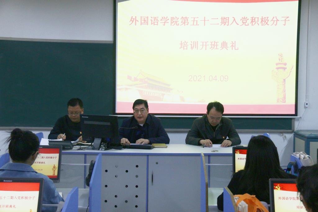 第52期入党积极分子培训班开班仪式。学院党委书记徐兆栋、副书记龚俊朋,团委书记张高峰、辅导员王淑杰、王欣欣出席,全体入党积极分子参加开班仪式。