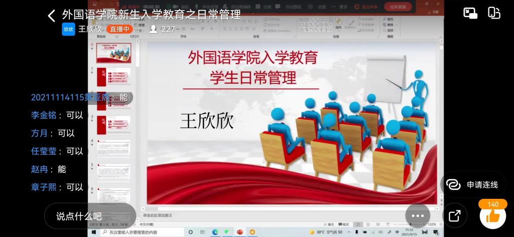 为了进一步增进2021级新生对大学、专业、学习、生活的认识和了解,及时转变角色,快速适应新环境,结合学校入学教育相关安排,9月13日起,我院陆续开展了2021级新生线上入学教育活动。