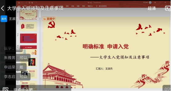 9月22日,辅导员王淑杰以“明确标准 申请入党”为题,向新生详细讲解了大学生申请入党的条件、发展流程和注意事项,强调同学们要端正入党动机,提升思想觉悟。通过此次教育,有助于规范入党程序,提高党员质量,帮助同学们对发展党员工作有更加清晰的认识。