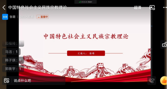 9月21日,辅导员张萌以“中国特色社会主义民族宗教理论”为题,向新生讲解了习近平总书记关于民族宗教工作的重要论述精神,帮助新生了解民族宗教相关政策法规,引导学生正确认识宗教,不在学校内传播宗教,自觉树立马克思主义信仰。