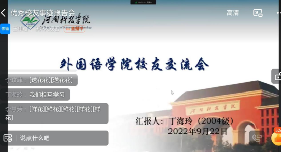邀请我院2004级英语专业优秀校友丁海玲博士在线上为2022级新生做事迹报告会。