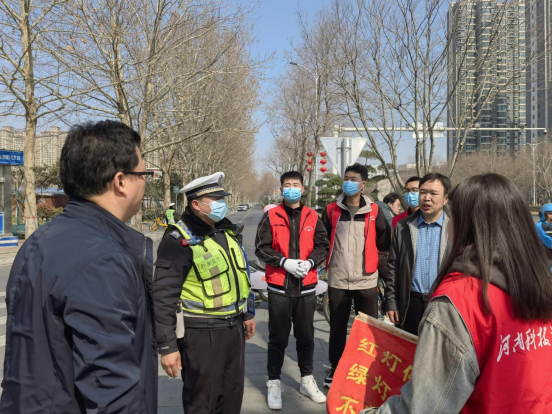 赴新乡市交警支队第五大队开展“文明交通 安全同行”学雷锋志愿服务活动,学院党委副书记龚俊朋、团委书记张高峰及10余名学生志愿者参加活动。