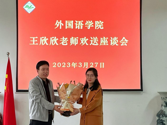 最后,龚俊朋代表学院向王欣欣送上鲜花并表示感谢。