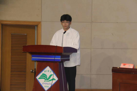 老生代表朱家雨发言,他代表全体高年级学生向新生表示欢迎,并结合自身体会分享了自己的学习经验、在校生活感悟,鼓励学弟学妹们尽快实现自我转变,适应大学生活。新生代表薛名岩发言,她代表全体新生感谢老师、学长学姐为迎新做出的辛苦付出,并号召全体新生们志存高远、脚踏实地,以乐观向上的生活心态迎接大学生活的挑战,用优异的成绩回报社会、报效国家!