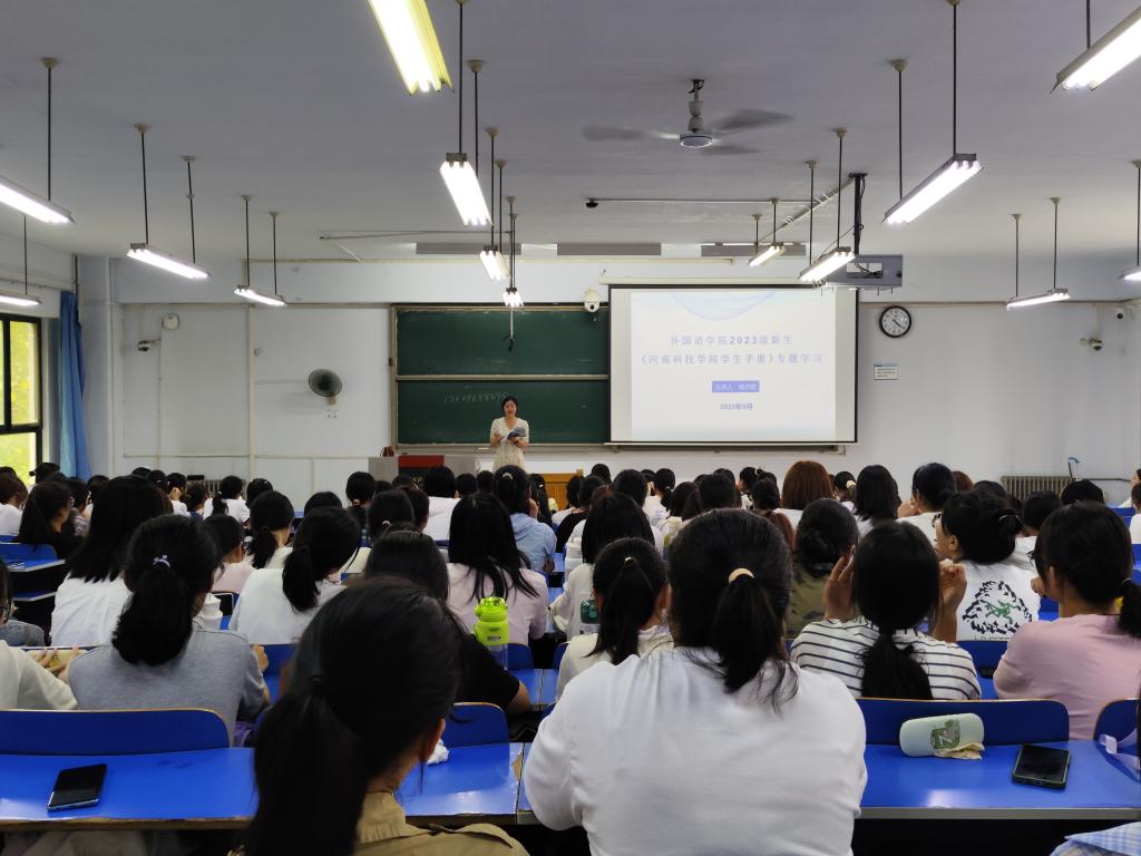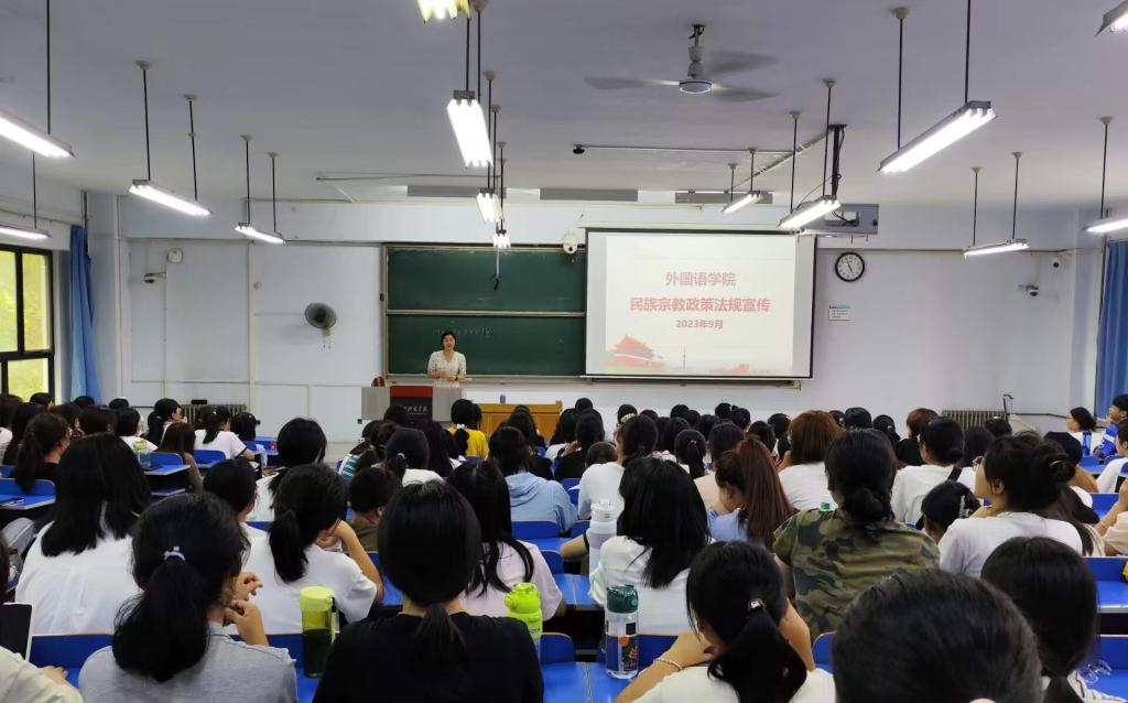 学生手册》中的法律法规、思想政治教育、日常管理、学籍及学位管理、资助管理等内容进行了详细的讲解,通过列举具体事例,帮助学生更好地理解学校的规章制度。同时,杨洪霞向同学们进行宗教政策法规宣传,引导学生树立正确的世界观、人生观和价值观。