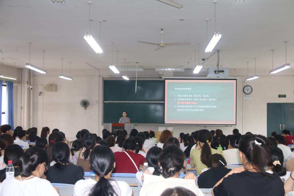 培养诚信感恩意识。朱晋妮从国家奖学金、国家励志奖学金、国家助学金和国家助学贷款几个方面对高校资助政策进行详细讲解,引导新生了解学习包括“奖、助、贷、勤、补、减”在内的一整套资助体系。接着,她结合具体事例教育引导新生要奋发向上、自强自立、讲诚信、学会感恩回报,用自己的实际行动和优异成绩回馈学校和国家。