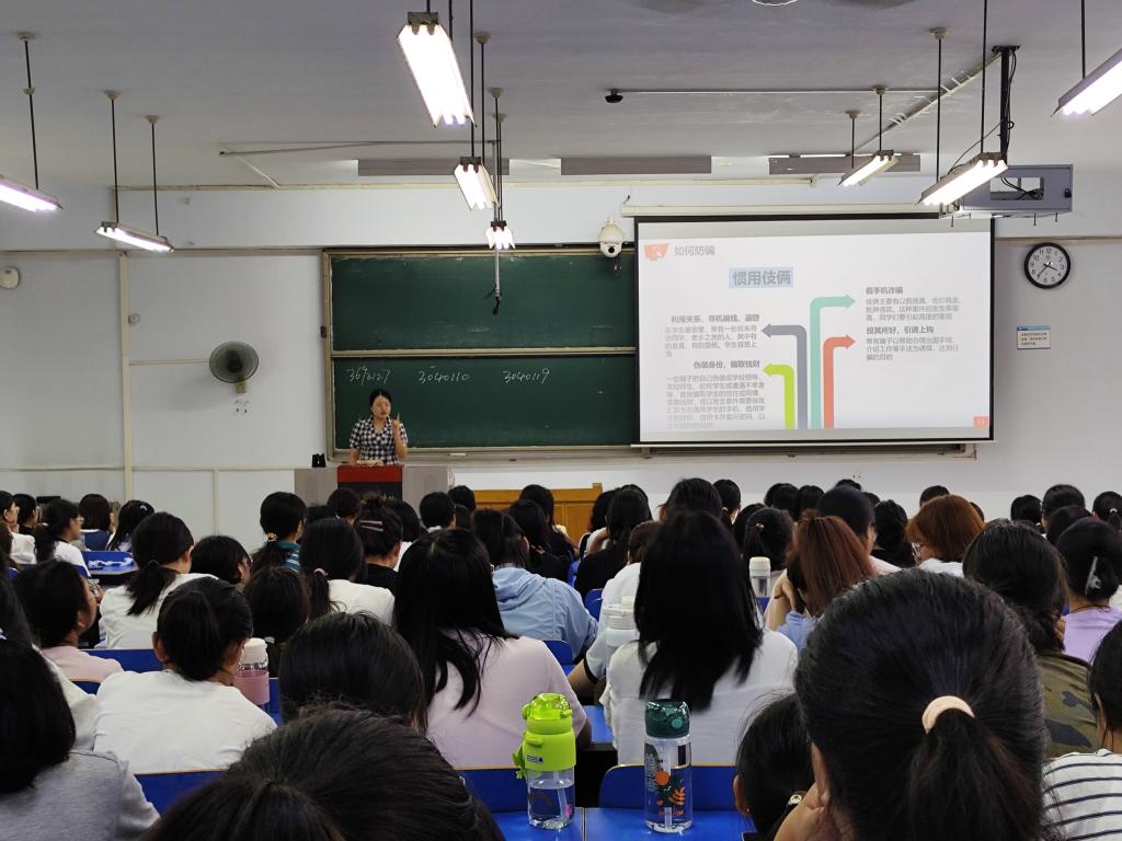 增强安全防护意识。李慧娟结合具体实例分别从人身安全、饮食安全、财产安全、交通安全、宿舍安全、防诈骗等方面进行了详细讲解,教育学生要严格遵守校规校纪,掌握必备的安全防范技能,提防校园传销和网络诈骗,提高安全防范意识和自我保护能力,做到“警于思,合于规,慎于行”。