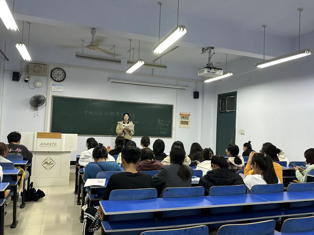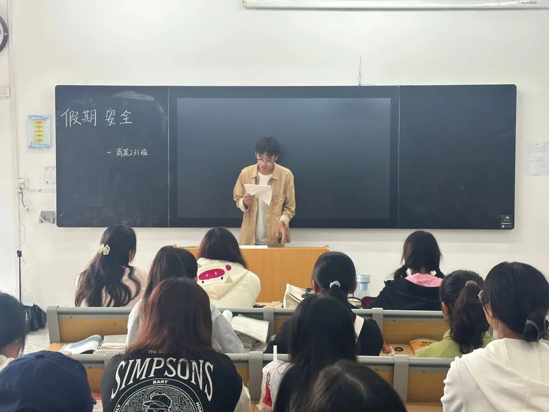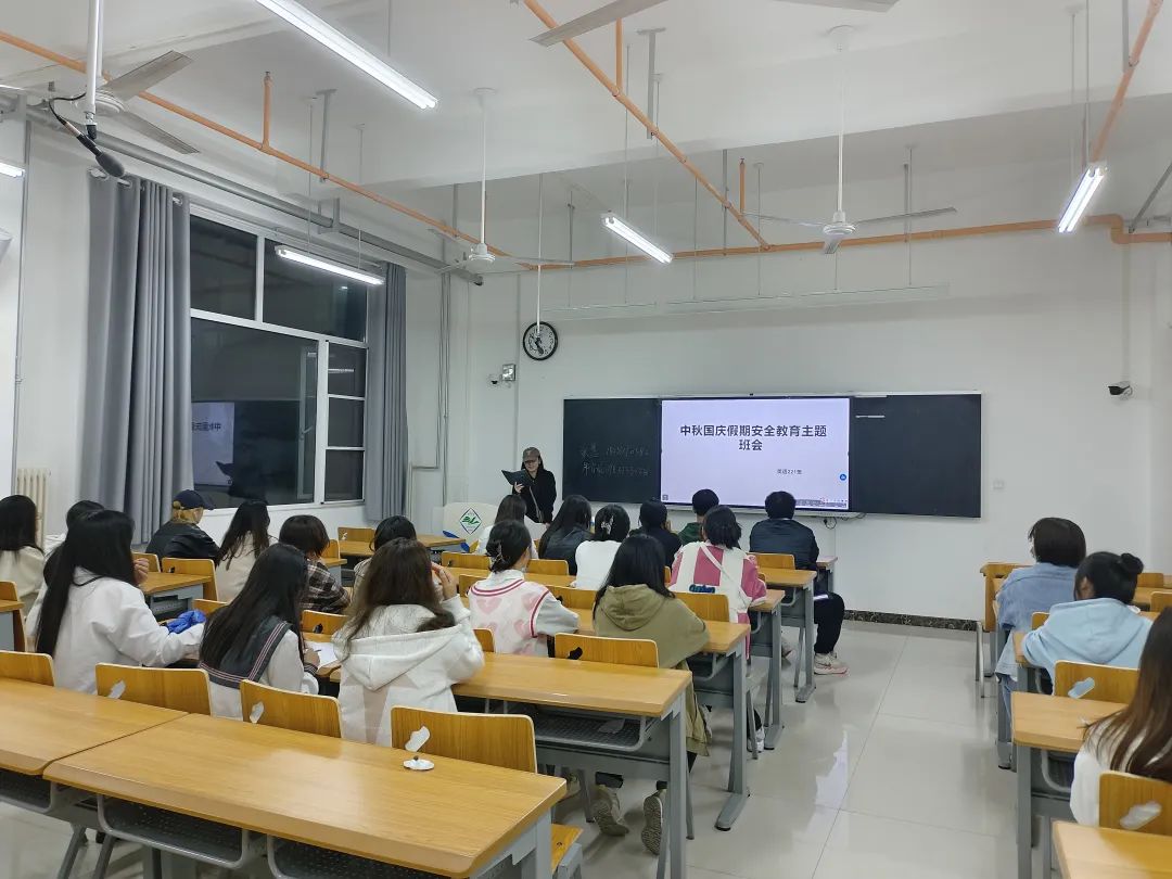 各班班长传达了学院关于做好中秋节国庆节假期学生安全教育工作的会议精神,结合具体案例引导班级同学注意人身安全、财产安全、交通安全、宿舍用水用电安全、饮食安全、心理安全、预防网络电信诈骗以及大雨预警天气等方面的安全,提醒同学们警钟长鸣,自觉遵守学校和学院的各项安全管理规定,牢固树立安全防范意识,提高安全防范能力,合理规划假期时间,合理安排个人学习生活。