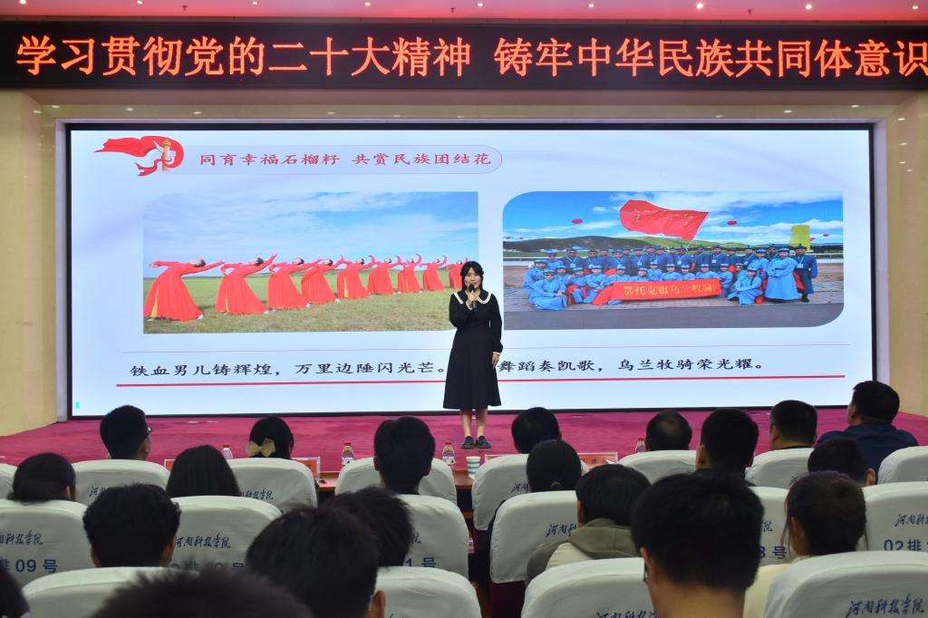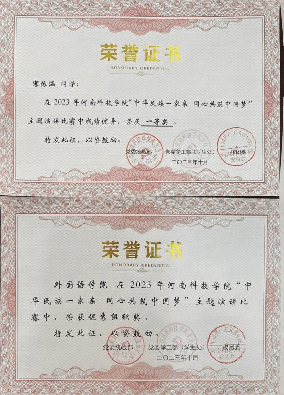 此次比赛共有23名选手成功入围决赛。我院商务英语222班宋依涵代表学院参加了比赛。她紧扣主题,用精心选择的事例、生动形象的语言,声情并茂的演讲,深切表达了对铸牢中华民族共同体意识的强烈认同,展示了青年学子实现中华民族伟大复兴的信心和维护各民族团结的决心。