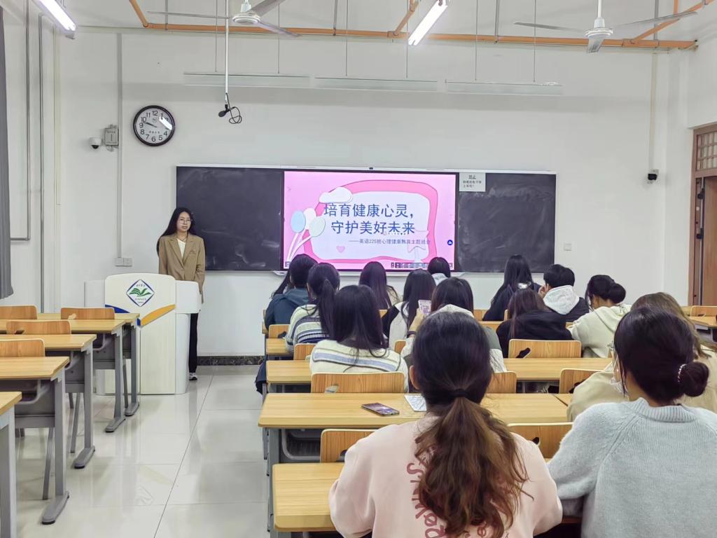 班会上,心理委员结合具体的心理健康案例,分析了大学生在学习、生活、人际交往等方面常见的心理问题,并分享了一些相应的解决方法,向同学们强调心理健康的重要性,鼓励同学们积极参加活动,增加大学生活的丰富性。随后,团支书做总结发言,提醒同学们应重视自身心理健康,理性对待心理问题,提升心理健康素质,做朝气蓬勃、内心充满阳光的大学生。