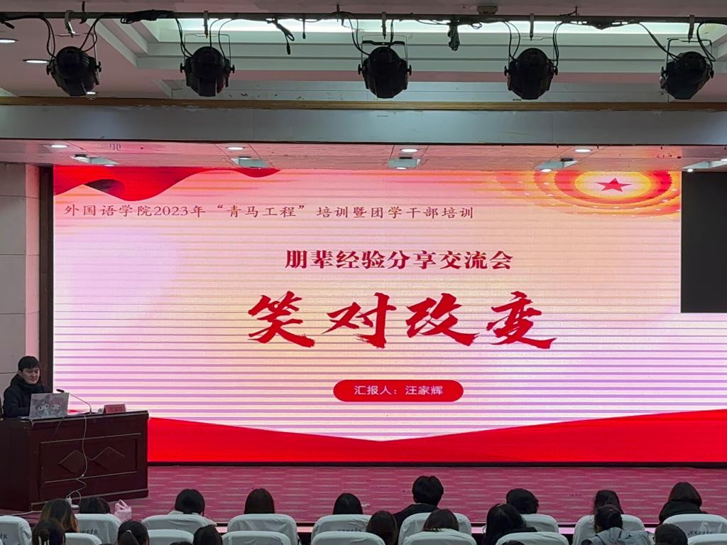学生兼职辅导员汪家辉在图教201为学院“青马工程”培训学员做“笑对改变”主题分享交流会。污污漫画
