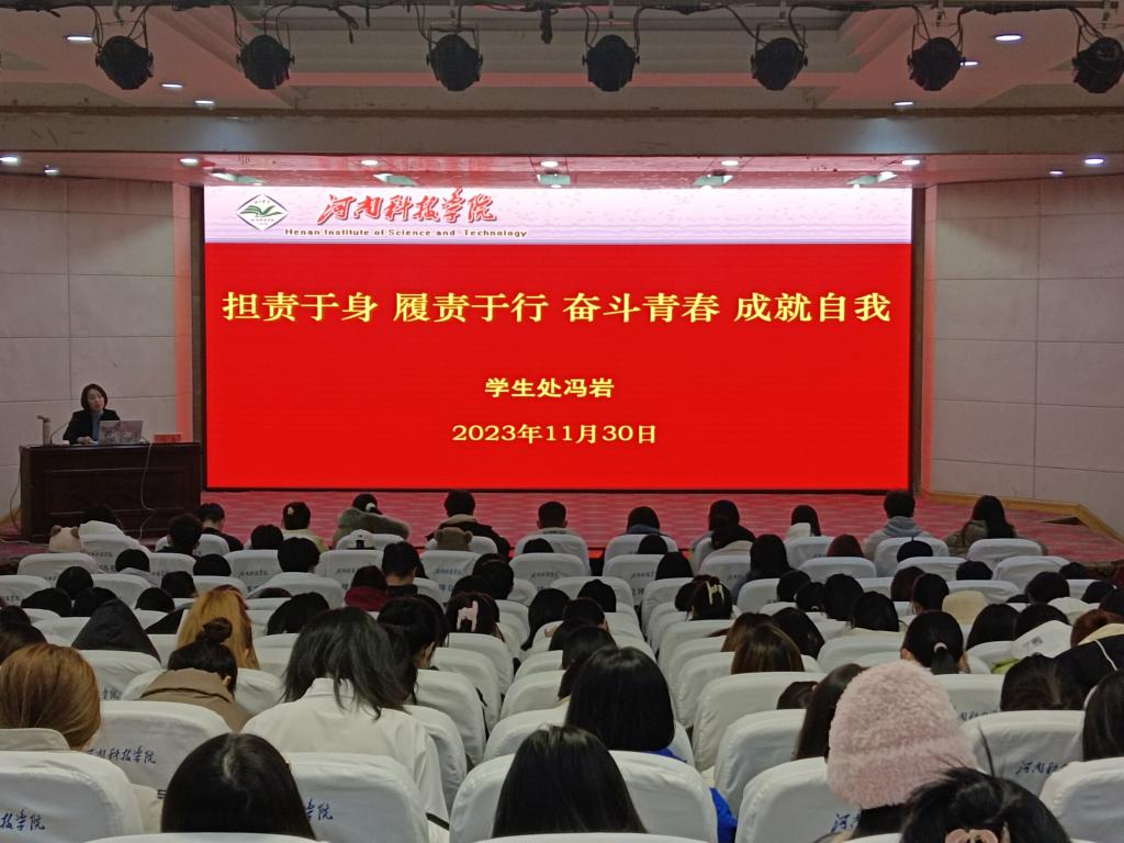 特邀学生处副处长冯岩老师在图教201为学院2023年“青马工程”培训班暨团学干部培训班学员作“担责于身 履责于行 奋斗青春 成就自我”专题讲座。污污漫画
