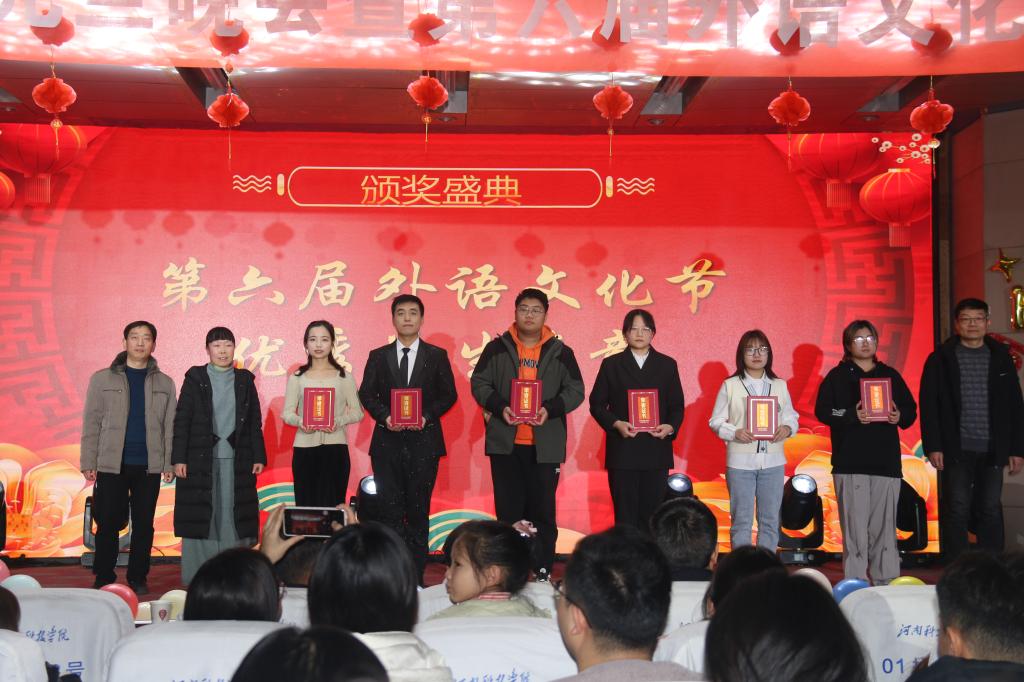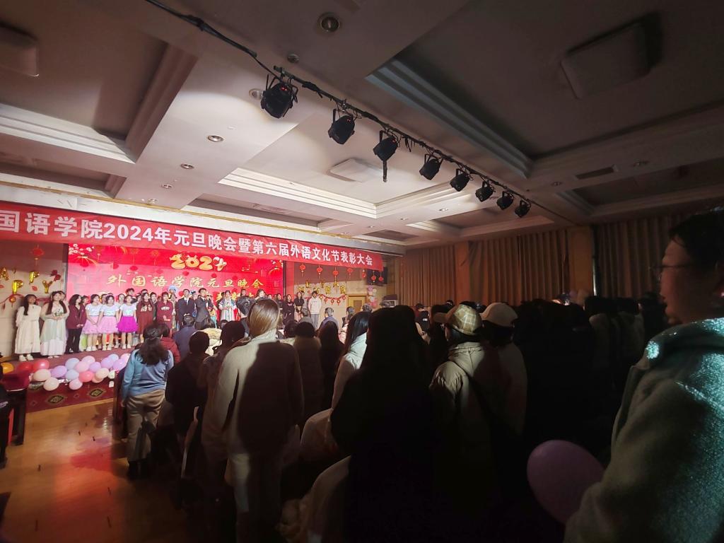 晚会在开场舞《桃花朵朵开》的欢快节奏中拉开帷幕,舞者们以优美的舞姿和动感的音乐点燃了现场的气氛。在中外歌曲串烧中,演唱者们用深情的嗓音诠释了不同语言的经典歌曲,展现出音乐的无限魅力。古典舞《同簪》将现场气氛推向高潮,舞者们通过华丽的舞姿,为观众呈现了一场绝美的视听盛宴。男声独唱Take me to your heart展现了同学们音乐才华的多面性,用独特的嗓音和情感投入诠释了这首歌曲的意境。《一颗苹果树》则通过深情的朗诵和感人的故事,让观众感受到亲情的温暖与美好。韩舞串烧向同学们展示了现代舞蹈的魅力,舞者们充满活力的表演为晚会注入了时尚与潮流的气息。歌曲《天边外》的深情献唱,引起了师生的强烈共鸣。爵士舞《危险派对》展现了同学们的青春风采。服饰变迁秀《千年流变,时转饰易》带领观众们穿越时空,领略千年间的服饰文化变迁,亲眼见证不同时代的服饰特色与风格,感受人类文明的进步与发展。此外,晚会还为第六届外语文化节中表现优异的学生和教师进行表彰,肯定了他们在此次外语文化节中的杰出表现和辛苦付出。“今夜万家灯火时,或许隔窗望,梦中佳境在”,大合唱《相亲相爱》为晚会带来了欢快的气氛。诵经典诗词,怀伟人功绩,在主持人的带领下,大家集体朗诵毛主席的《沁园春·雪》,晚会圆满落下帷幕。