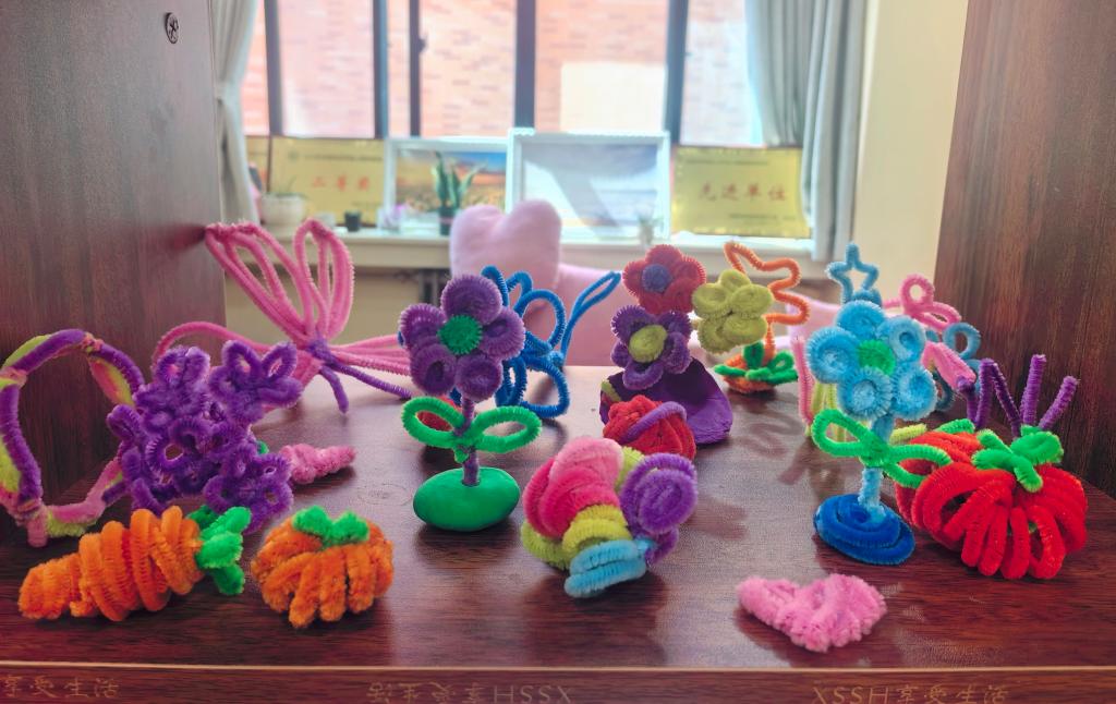 在7216心理室开展“百变线条,创意扭扭”手工扭扭棒活动。