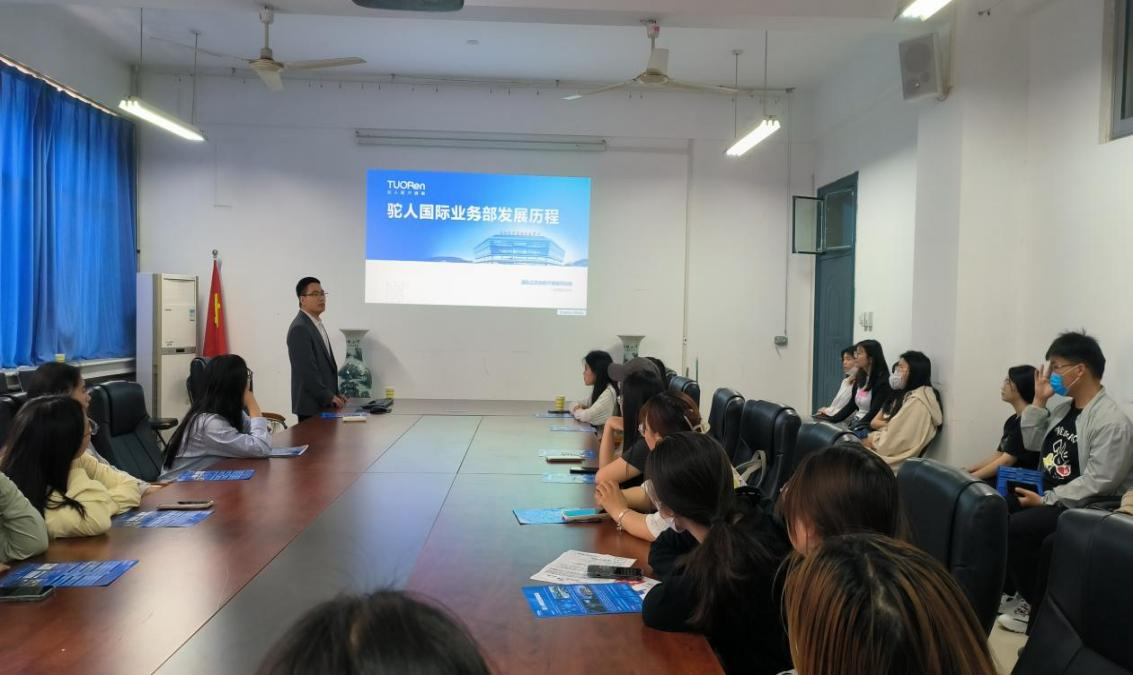 招聘会上,驼人集团国际业务部负责人首先通过视频短片,对公司理念、业务范围、产品类别等作了简要介绍,接下来就招聘岗位、职责要求、薪资待遇等向在座学生作详细介绍,并向同学们发出诚挚邀请,希望有更多年轻的年轻人能够加入到驼人集团,共创美好未来。最后在场学生结合求职意向与自身实际,就关心的问题与驼人集团相关工作人员深入交流互动,并提交了求职简历。