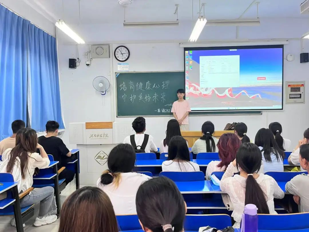 班会上,心理委员结合大学生在学习、生活、人际交往等方面可能会出现的心理问题,分享了相应的解决方法,鼓励同学们积极乐观地面对生活中的困难与挑战。随后,心理委员强调了心理健康的重要性,并呼吁同学们积极参加心理健康宣传月活动。最后,班长做总结发言,提醒同学们应重视自身心理健康,理性对待心理问题,提升心理健康素质,做朝气蓬勃、内心充满阳光的大学生。