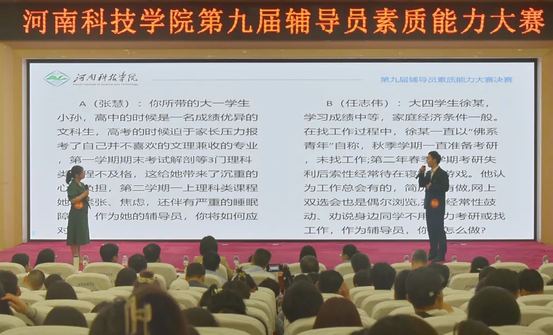 经过前期选拔,我院辅导员张慧突出重围,进入决赛。决赛由“案例研讨”和“谈心谈话”两个环节组成。