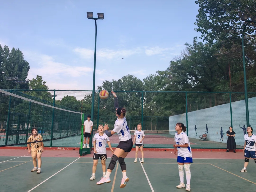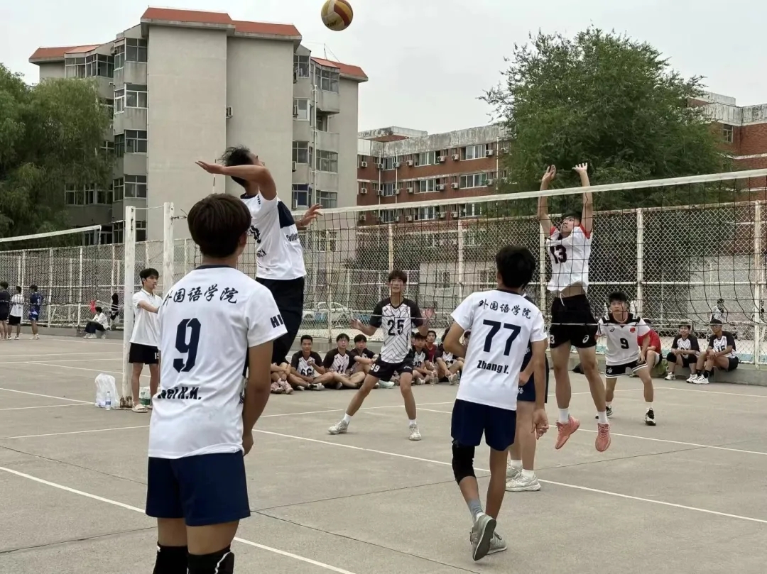 发球、起跳、拦网、扣球,在我院与经济管理学院和食品学院的比赛中,女排队员们在比分暂时落后的情况下,不断调整状态,相互鼓励,成功反超比分,扭转了比赛局面。男排赛场上,队员们挥洒汗水,奋力拼搏,每一个传球都凝聚着智慧与团结,充分展现了外语学子的风采。赛场旁,学院学子自发为排球队员们加油助威,为每一个精彩瞬间欢呼喝彩。一份份热情与支持,成为了排球队员们前进的动力。