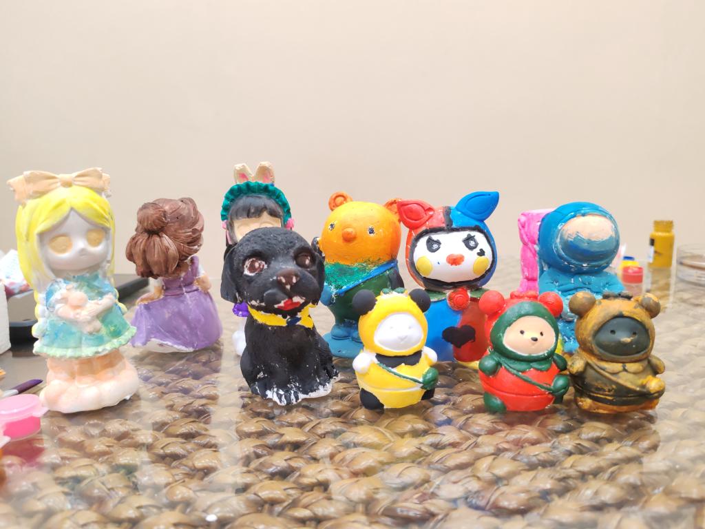 活动中,同学们认真地调色、勾线、涂抹,用丰富的想象力和创造力绘染着自己的石膏娃娃。他们用画笔和颜料表达了自己对美的理解和感受,也彰显了自己的个性。纯白色的石膏经过颜料的点缀后,仿佛拥有了鲜活的生命,鲜艳的色彩彰显着同学们的热忱与青春活力。最后,同学们互相分享创作理念并与自己的作品合影留念。