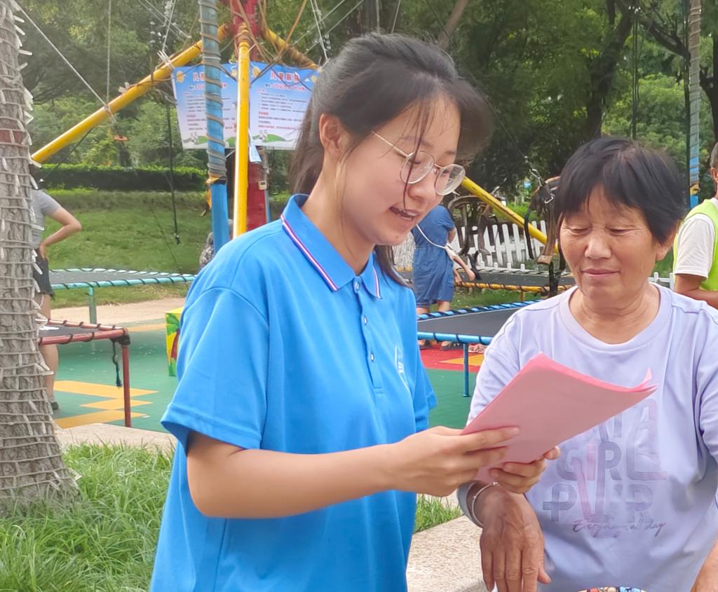 实践队成员通过发放调查问卷以及宣传页等方式对广大居民日常生活中普通话的使用情况展开了实地调研,了解群众对于普通话的掌握程度以及实际使用情况,强调了规范使用国家通用语言文字的重要性,介绍普通话的基础知识以及规范用字的方法和技巧。