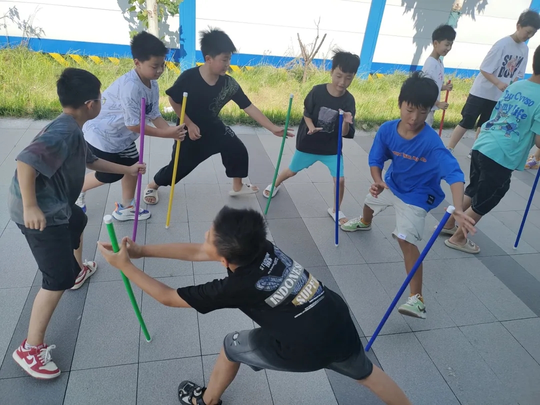 体育课上,各班分别进行了“能量传输”和“不倒森林”等趣味活动。课前,支教队员向小朋友们介绍了游戏规则和安全注意事项,并带领大家进行了热身运动。在游戏过程中,大家全情投入,积极探索,默契配合,依靠团队的合理分工及团队的力量,共同完成挑战。